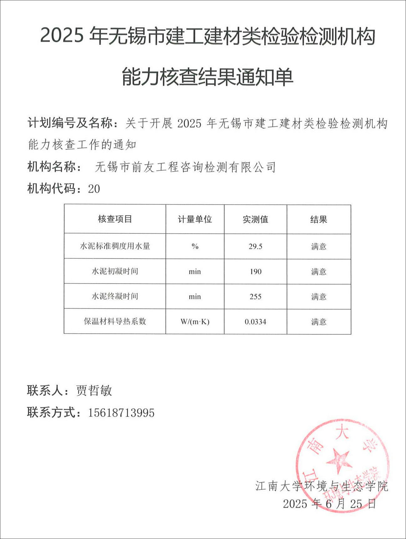 | 2025年無錫市建工建材類檢驗檢測機構能力核查公司全獲滿意 | ||
